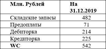 Т.е. рабочий капитал вычисляется как сумма «запасов», «дебиторки» и «предоплат», и за вычетом суммы «кредиторки». Вся информация по данным показателям доступна в бухгалтерском балансе.