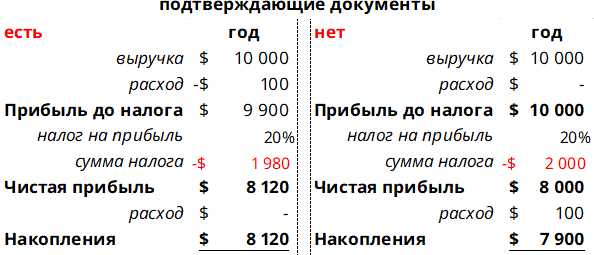 Т.е. если по оказанным ремонтным услугам стоимостью $100 не будут предоставлены подтверждающие (первичные/ закрывающие) документы, вы потеряете $220.