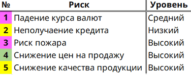 Для примера рассмотрим пять рисков.