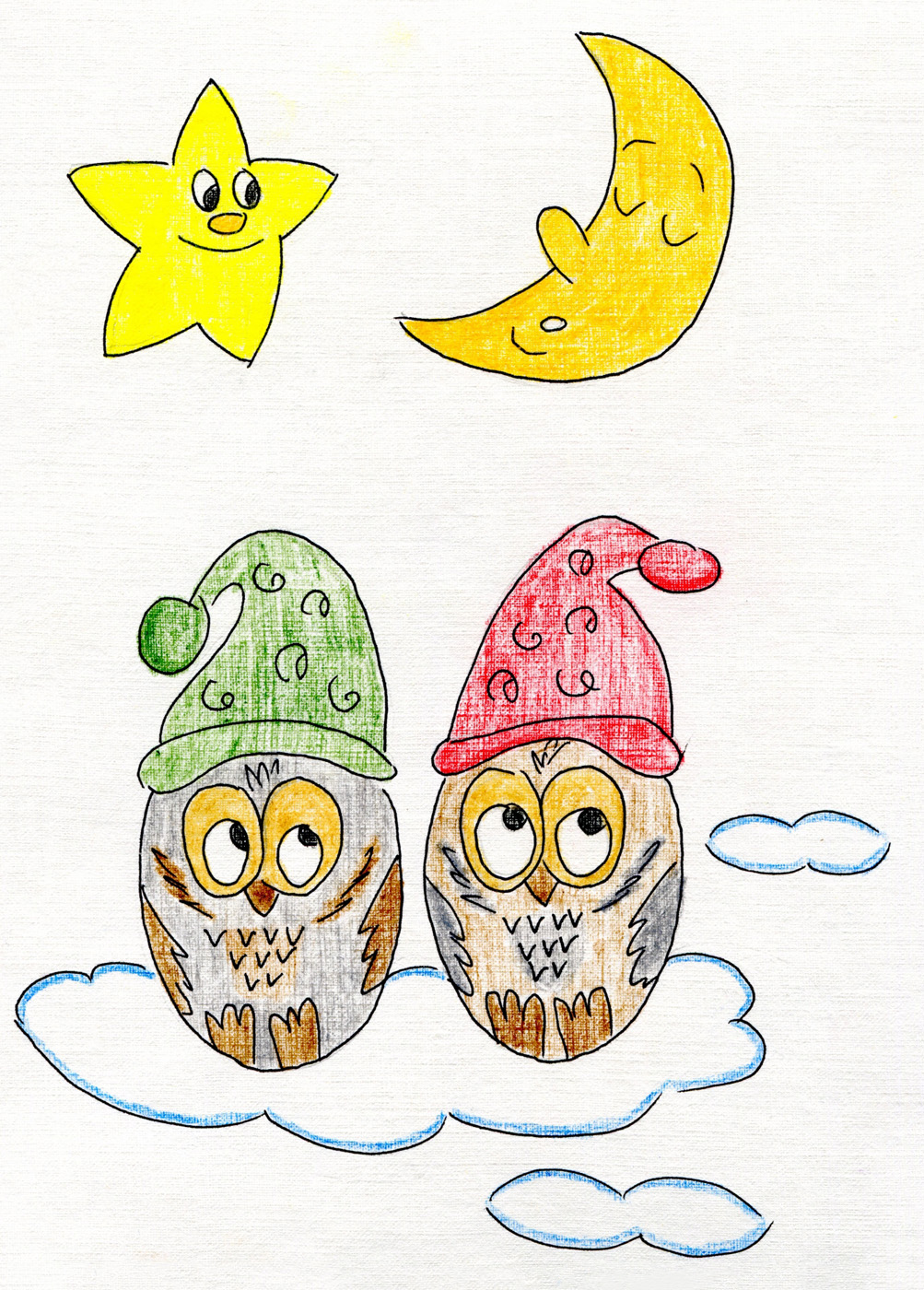 Когда стемнело, на небе друг за другом стали появляться разноцветные мерцающие огоньки. Это были звезды. Рики и Дики никогда ещё так близко не видели таких ярких фонариков. И тут одна звёздочка спросила: