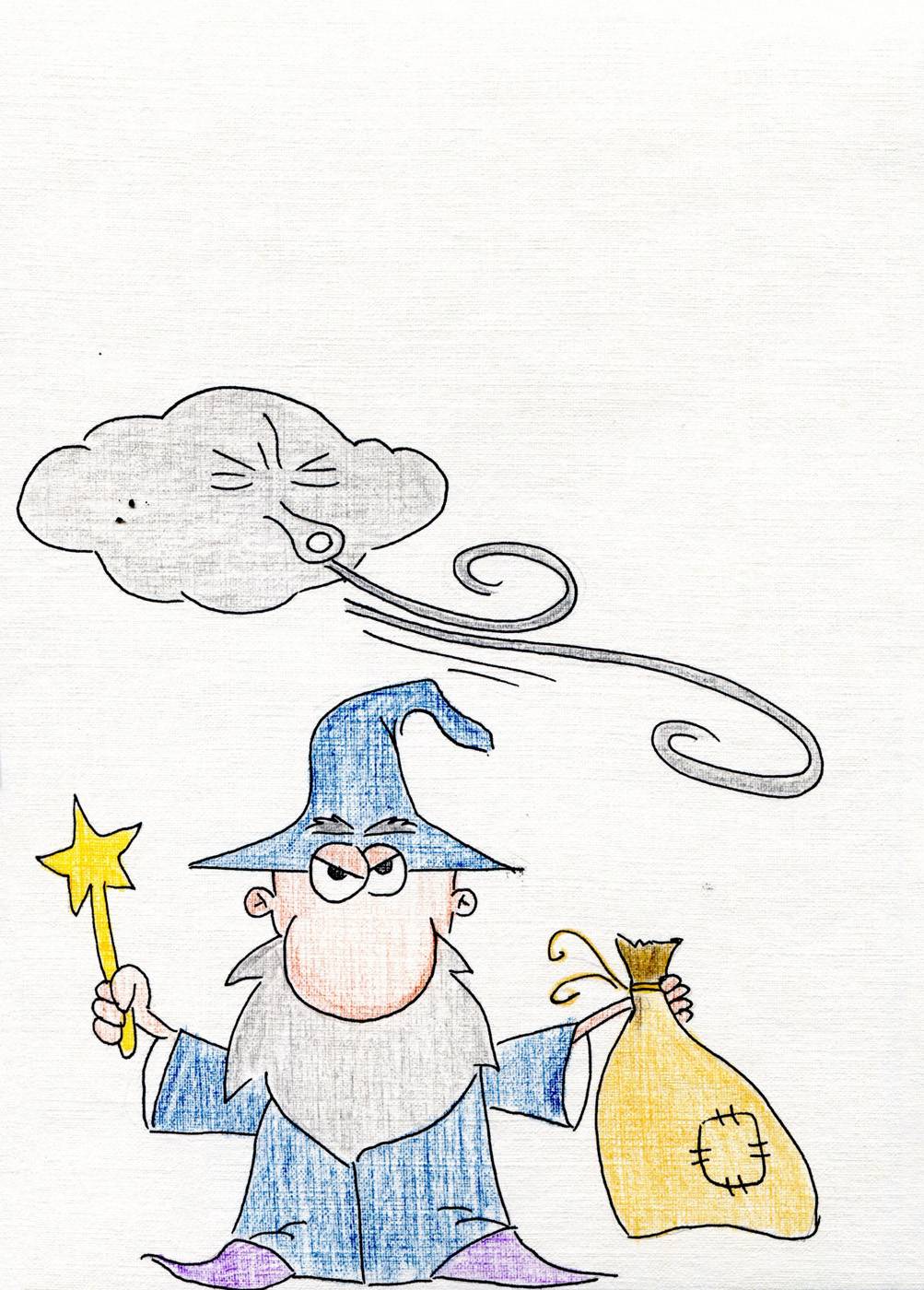 Однажды в сказочную страну Снеготутию прилетел Могучий Ветер и принёс с собой Злого Волшебника. У него было много недоброй магии, но самым ценным чудом он считал волшебный мешок, ведь в него можно было спрятаться и стать невидимым.