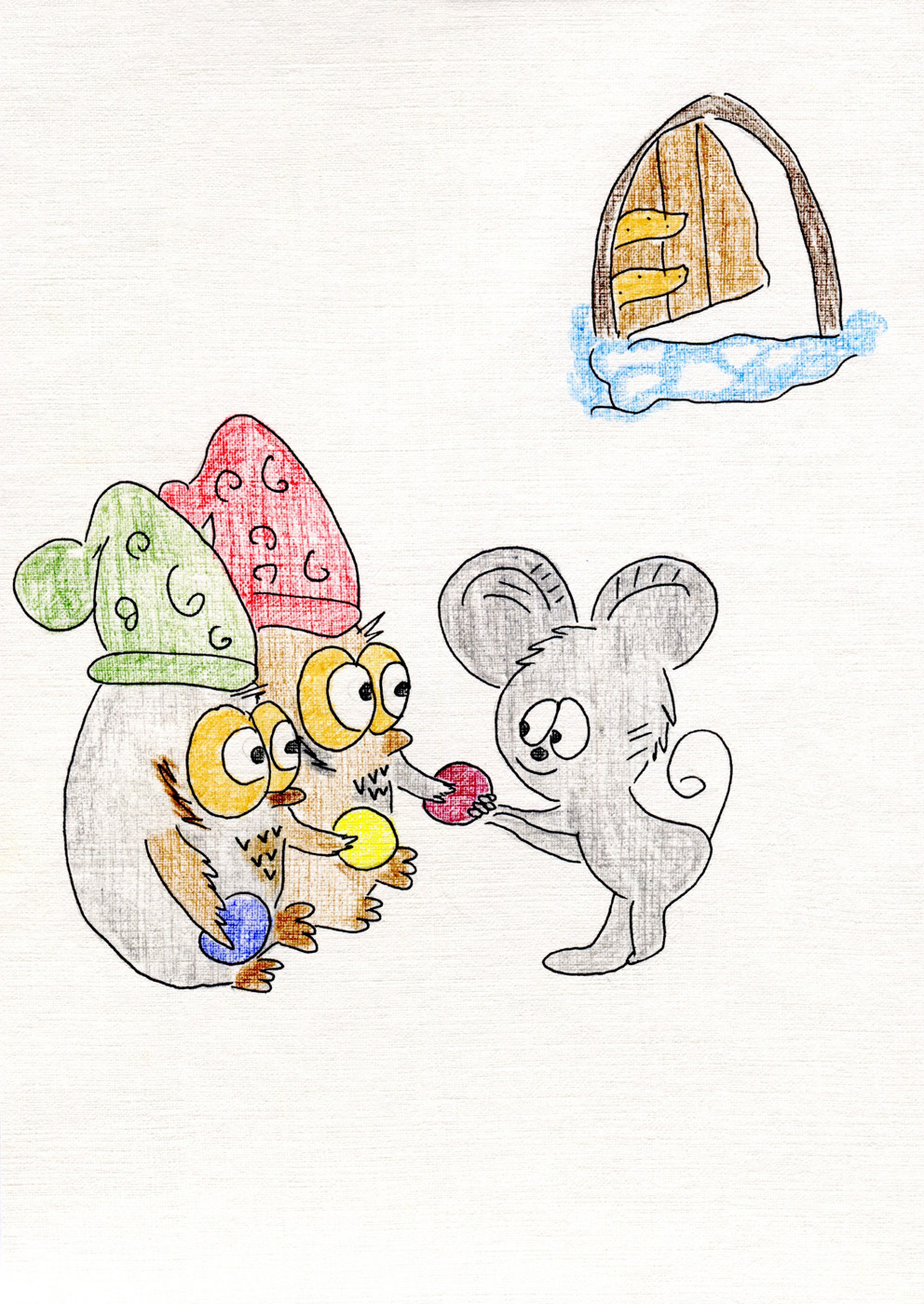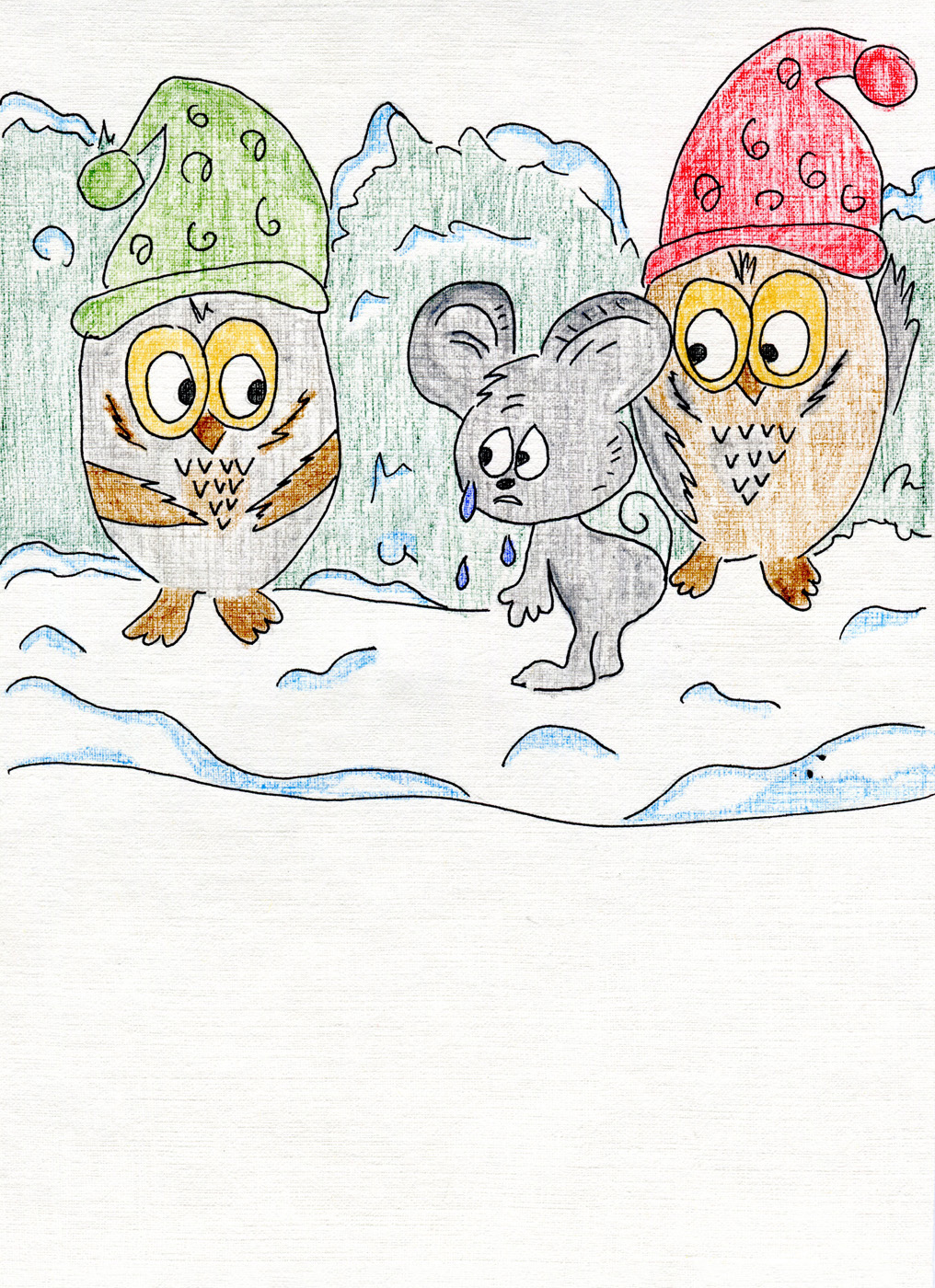По пути к дому они построили норку своему новому другу мышонку и угостили его вкусными снежками.