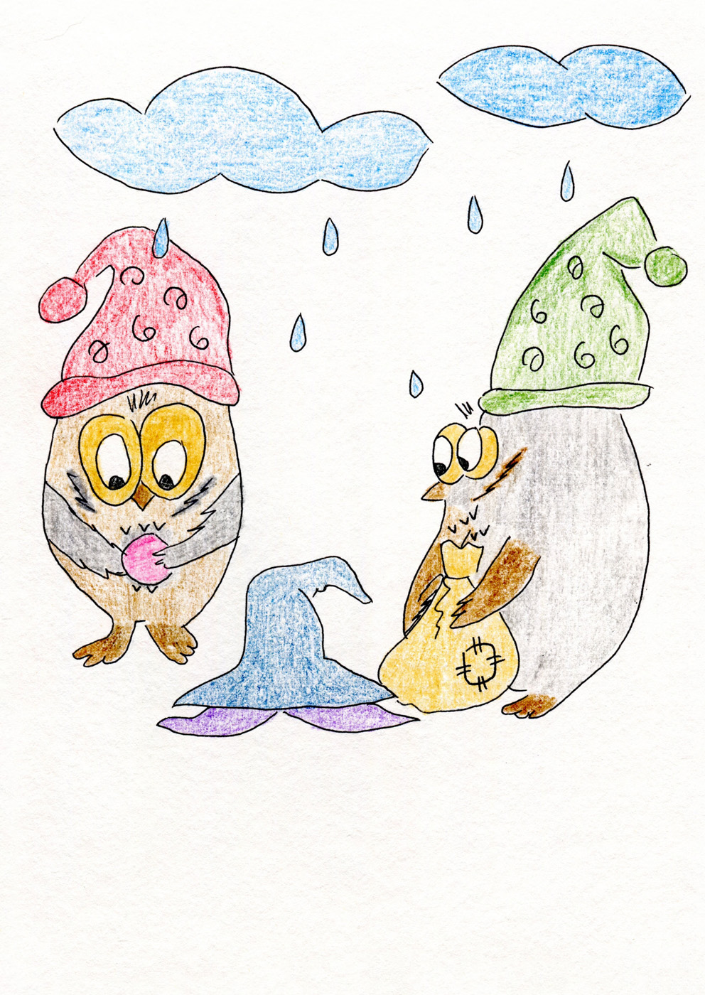 Но Злой Волшебник схватил мешок со снежками, надел на себя мешок и стал невидимкой. Он хотел убежать, но над лесом собрались тучи. Злодей знал, что если он попадёт под дождь, то его волшебство прекратится. И не успел он спрятаться в пещеру, как начался дождик. И на глазах у Рики, Дики и мышонка Злой Волшебник растаял.