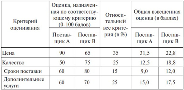 Здесь мы фокусируемся не на количестве, которое будет приобретено, а на том, какой из поставщиков должен иметь приоритет заключить контакт на поставку.