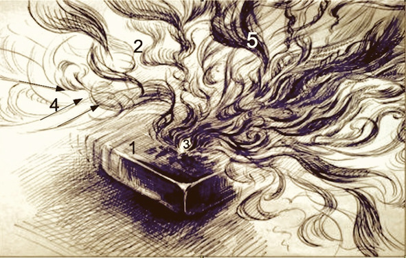 На первом рисунке изображена модель времени, а на втором – рисунок Леонардо да Винчи «Мудрец, изучающий время» (. Leonardo da Vinci, Old Man Seated and Swirling Water, 1513, Royal Library, Windsor)