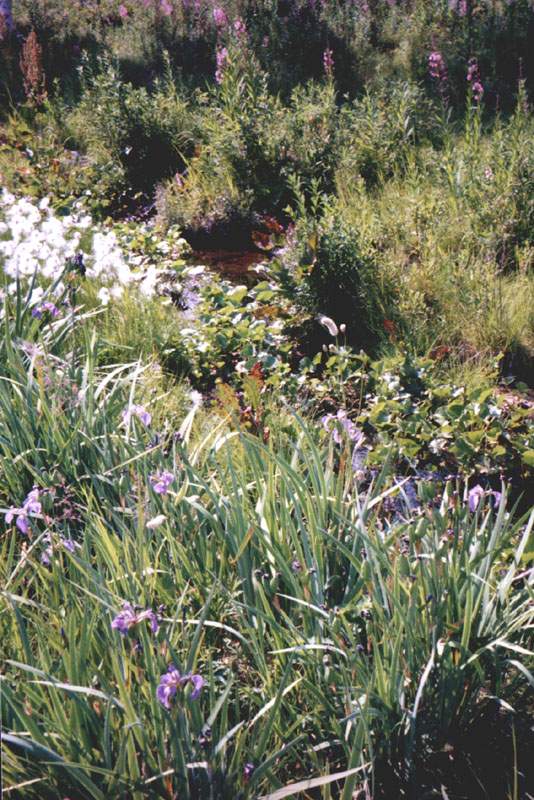 По досточкам перешел через небольшой ручеёк, на берегах которого росли совершенно необычные, как будто с другой планеты, растения, то тут, то там, раскинувшись, качались синие с желтым лепестки ирисов, поле голубики радовало взор. Да, рисовать в походных условиях, всё же не просто. Вдохновение вроде бы и хотело прийти, но что-то почему-то ему мешало. Покормив комаров и вновь наевшись жимолости, очень довольный вернулся обратно и просто так валялся в палатке, размышляя.