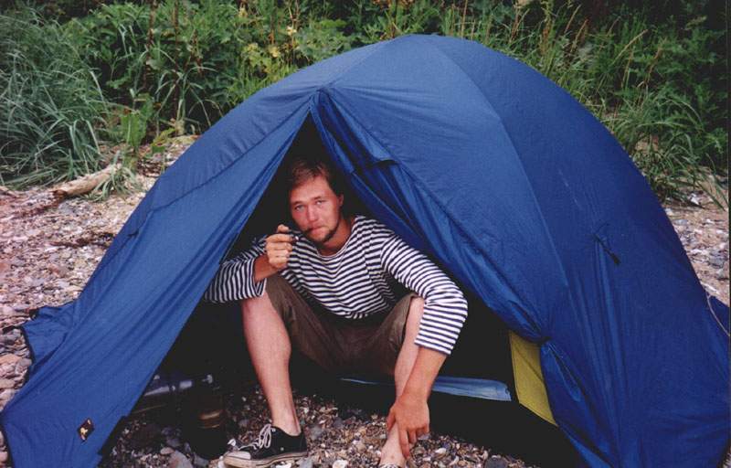 Станислав, оставив вещи в домике, проводил меня до места, где меньше людей и можно неплохо встать с палаткой. К тому же тут неподалеку есть душ, и можно добыть пресной воды. Напоследок пообещал зайти завтра в гости с женой.