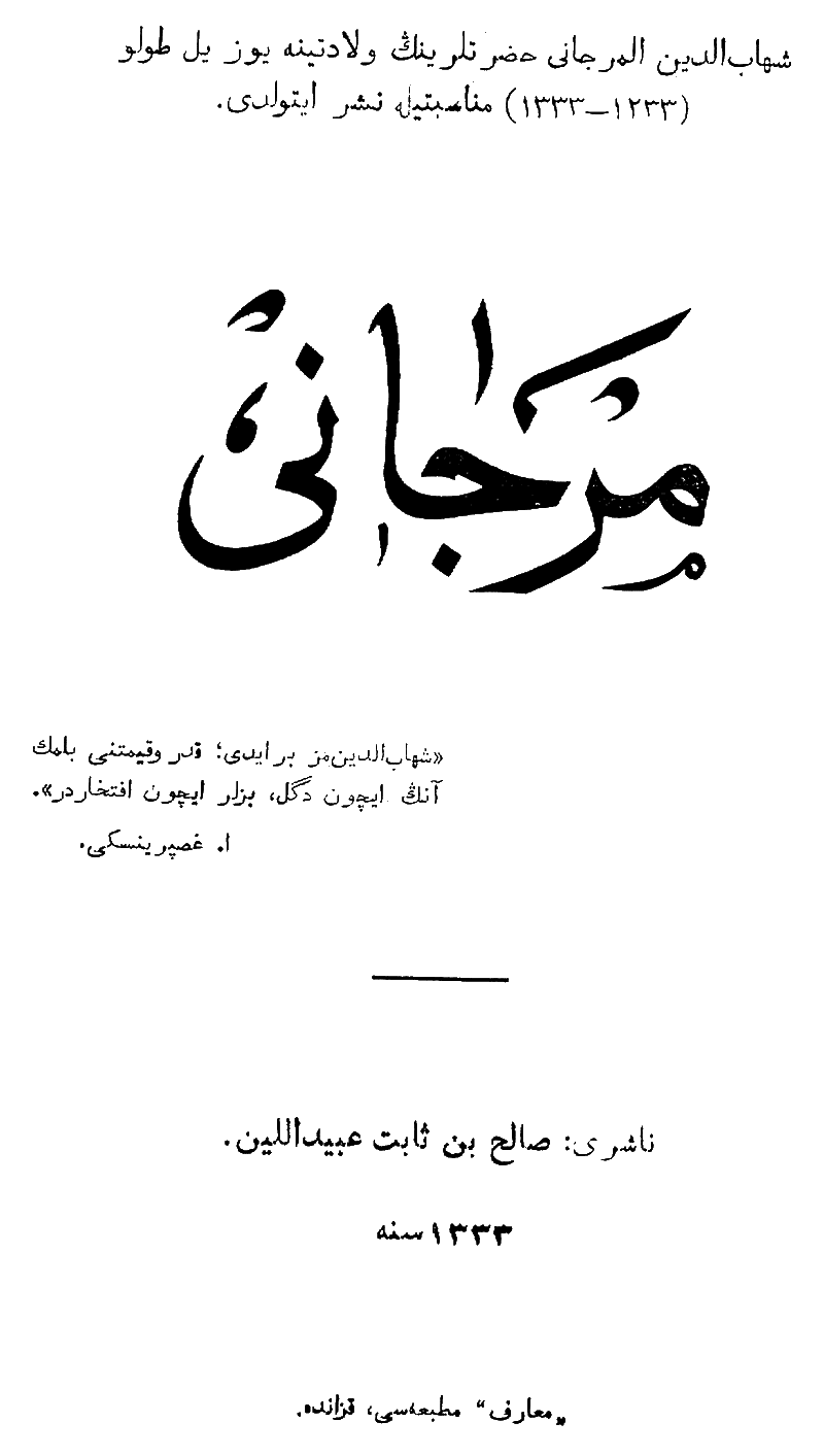 Шихабутдин Марджани. Сборник статей, посвящённый 100-летию Ш. Марджани, изданный в Казани в 1915 г.