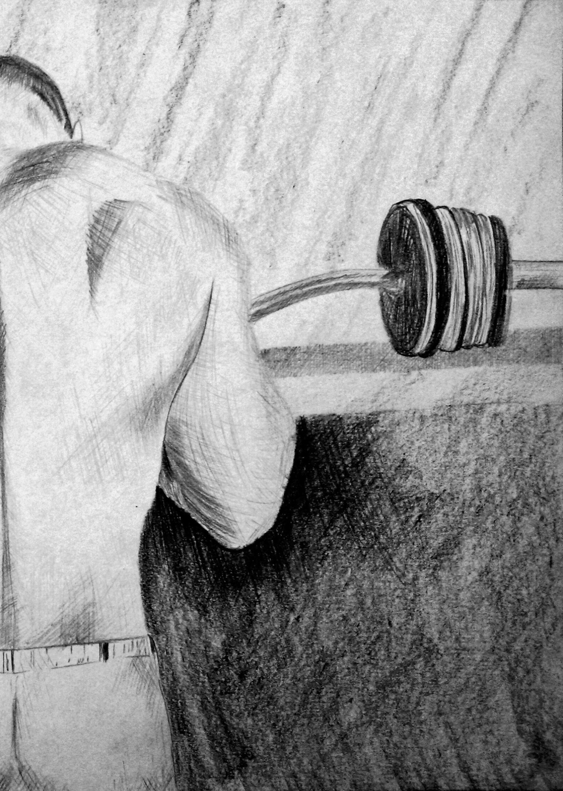 лежал под штангой и упорно давил ее от груди, пропитывая майку