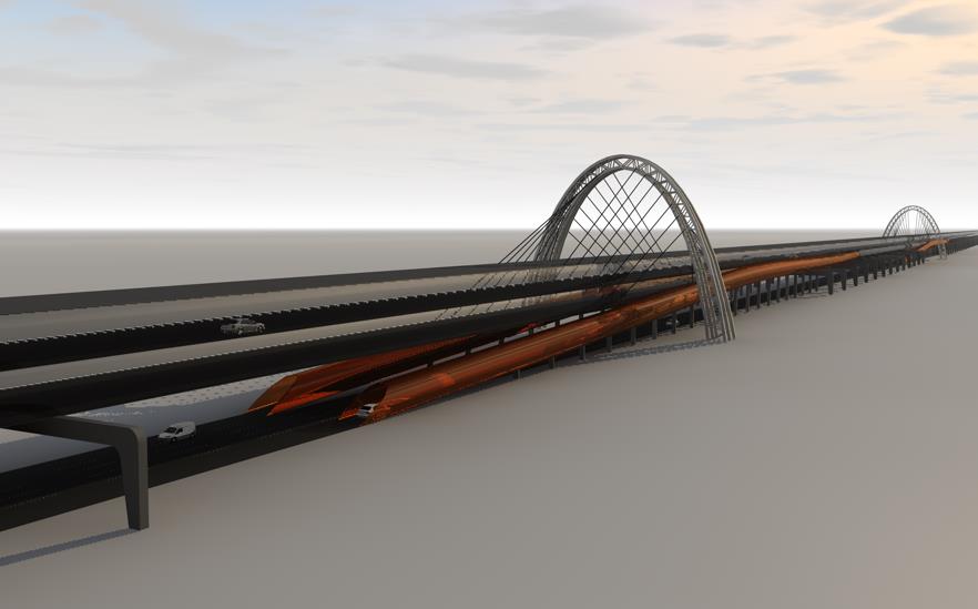 Магистрали-эстакады могут быть установлены сначала на въездах-выездах крупных городов уже через год-два, если наладить производство типовых секций магистралей-эстакад из металлопроката.