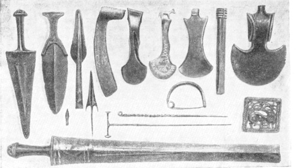 Бронзовые предметы из могильного инвентаря 2-го и 1-го тысячелетий до н. э., найденные в разных местах Грузии.