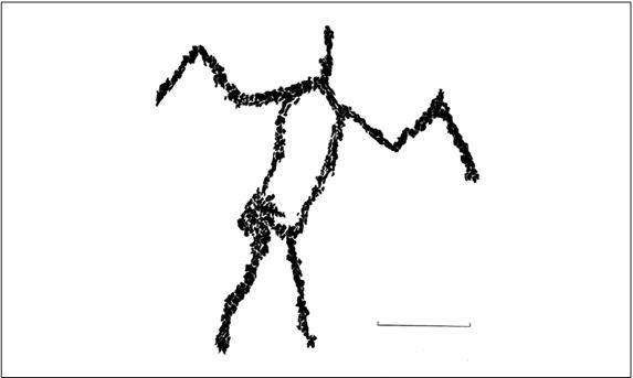 Рис. 5. Петроглифы Зеленого Озера. Плита 6. Птицечеловек. Первая половина II тыс. до н. э. Выбивка. Шкала 10 см
