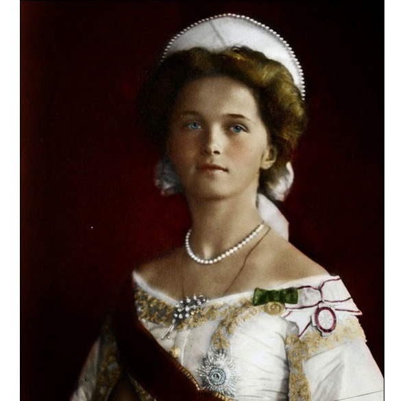 Государыня была в белом. Шляпка драпирована белой вуалеткой. Нежное белое лицо, но, когда Она волновалась, щеки Ее покрывались бледно-розовым румянцем. Рыжевато-золотистые волосы, синие глаза, наполненные печалью. Гибкий, тонкий, как тростинка, стан. Помню великолепные жемчуга. При каждом движении головы в бриллиантах Ее серег вспыхивали разноцветные огни. На руке простой перстенек с эмблемой свастики – излюбленным ее символом возрождения, – с которой впоследствии было связано множество всяких домыслов и предположений, будто Императрица была склонна к оккультизму. Эти досужие люди просто не понимали, что на самом деле значила для нее эта эмблема.