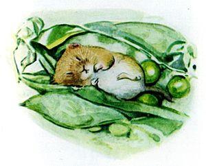 Садовник оставил большую плетеную корзину у садовых ворот, чтобы посыльный забрал ее по дороге. А Тимми Вилли взял да пролез между прутьями. И, наевшись гороха, крепко заснул.