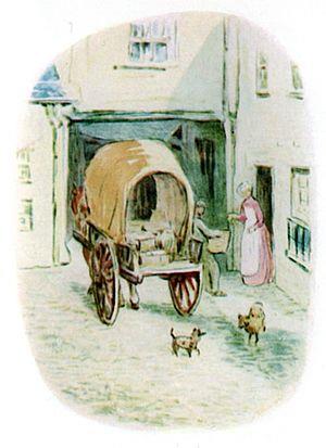 Он проснулся в испуге: корзину как раз ставили в двуколку. Повозка дернулась, зацокали копыта лошади. По пути в двуколку забрасывали все больше посылок; она все ехала и ехала, а Тимми Вилли трясся от страха среди подпрыгивающих от движения овощей.