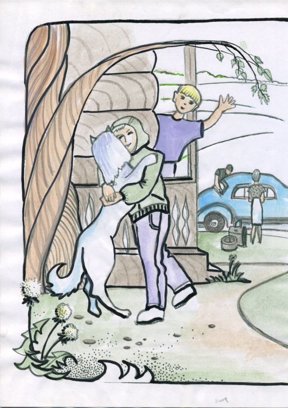 Вдруг во дворе радостно залаял Белый. Светик выглянул в окно и увидел автомобиль. По тропинке к дому бежал Сережа. Белый едва не повалил его с ног. Стоя на задних лапах, он торопливо облизывал Сережкино лицо.