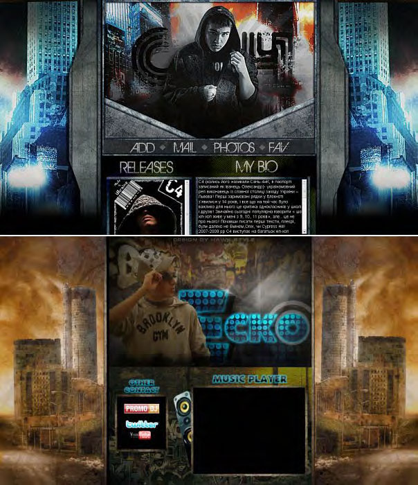 Это было прямо достижение, радость распирала! Это были мои первые работы по сайтам. И с помощью этих работ, я считаю, что вышел на следующий уровень. Таким образом, я постепенно перешел из обложек до музыкальных страничек, мини-сайтов.
