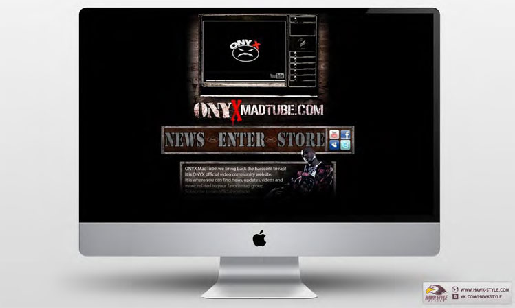 И еще мне ответил менеджер рэп-группы Onyx, довольно известная группа. Это можно сказать такой Old school рэпа. Многие подъезды и гаражи были обрисованы этими надписями и их известным злым смайликом. Мне ответил их менеджер, попросил сделать дизайн для фан-сайта. Это официальный фан-сайт, который группа сама рекламировала. На нем загружались ролики, новости, информация про ближайшие мероприятия, концерты, все такое. И я сделал эту работу.