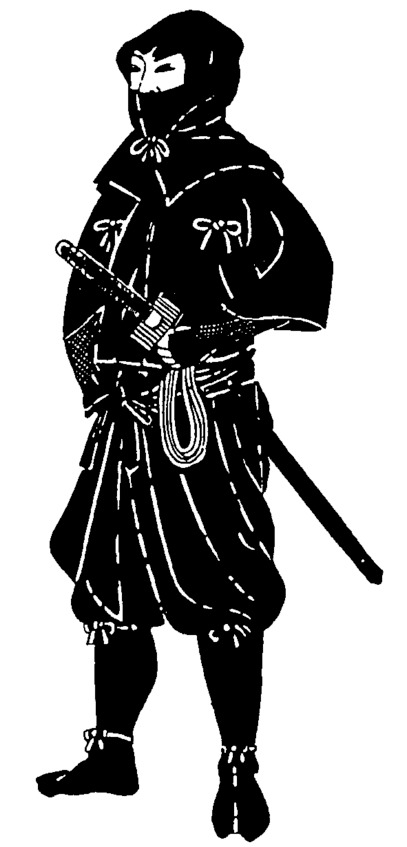 Ниндзя в маскировочной одежде синоби сёдзоку. Рисунок по фотографии Фудзиты Сэйко