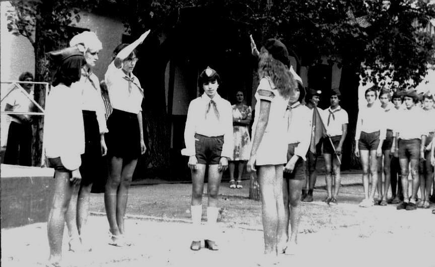 Элла салютует пионервожатой в лагере «Уголек» 1980 год