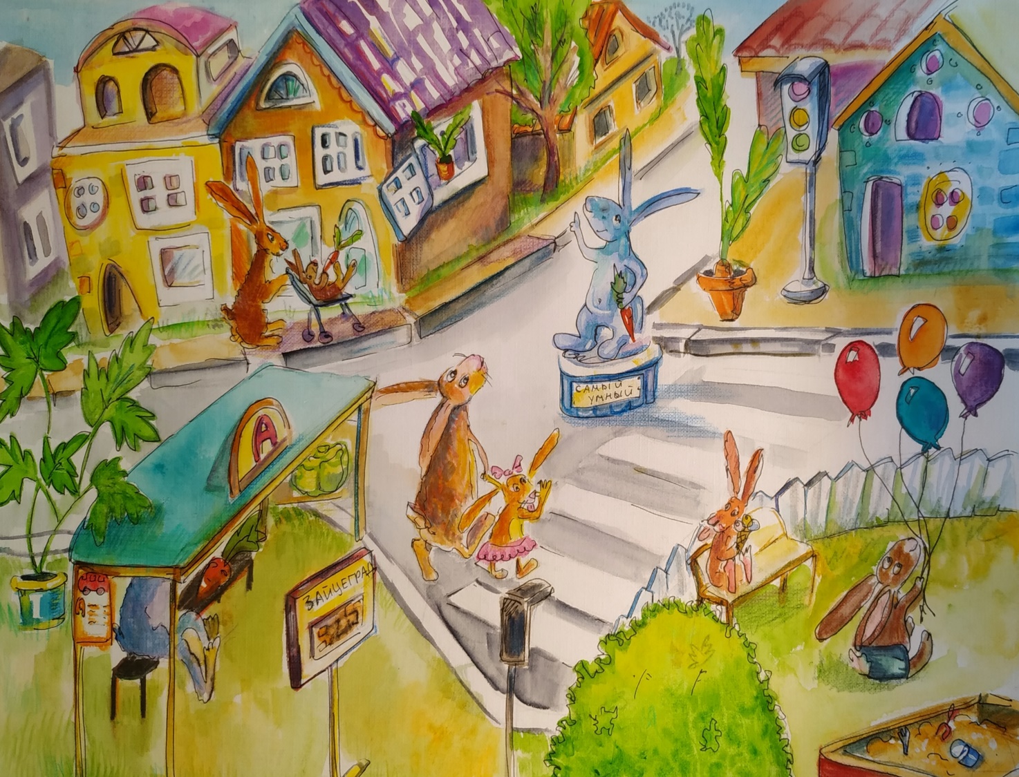 Давным-давно в Зайцеграде не было машин и дорог. Зайцы очень любили ходить друг к другу в гости, и иногда им приходилось долго добираться пешком. Это было очень утомительно.