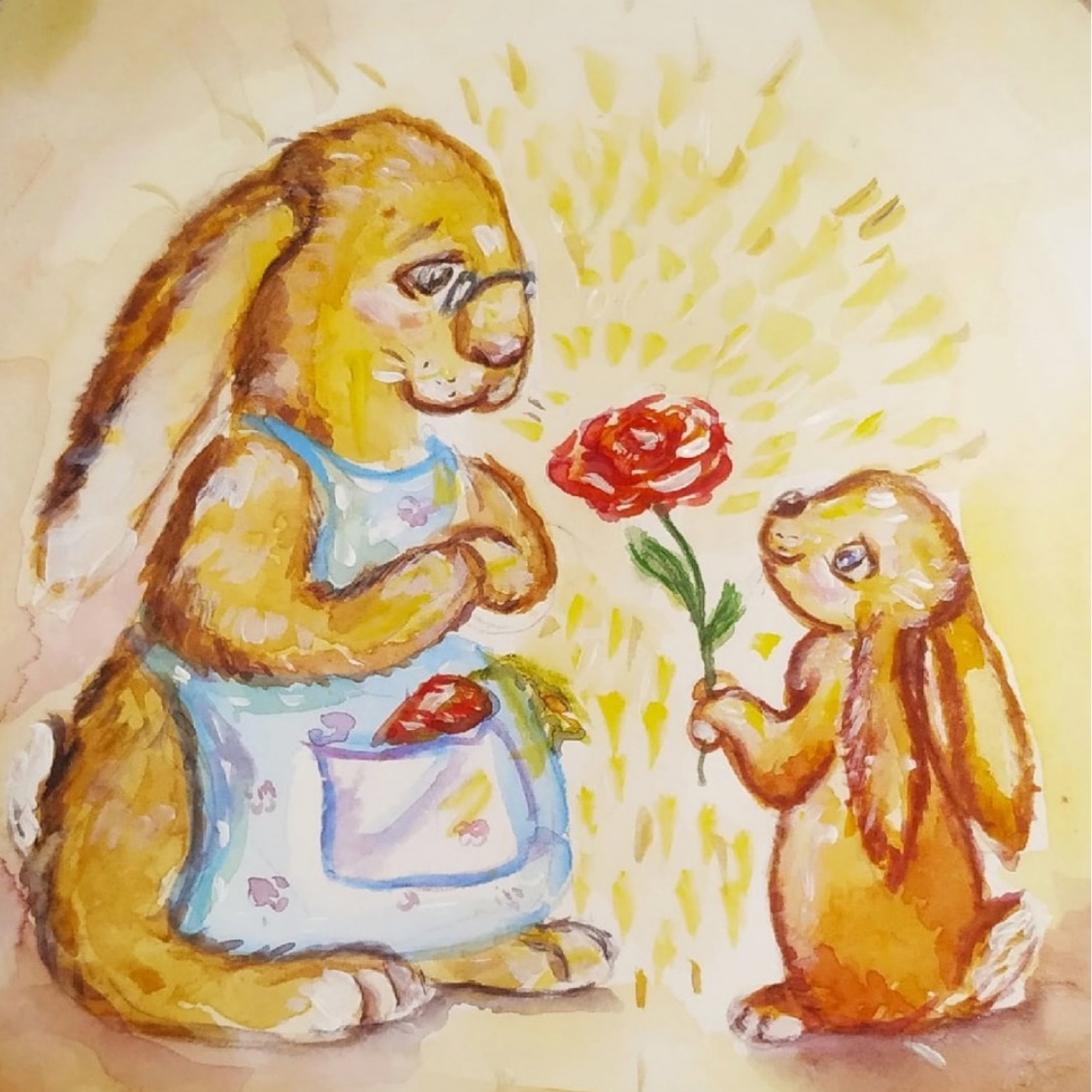 Вечером он вернулся домой и протянул розу бабушке-зайчихе. Зайчонок не промолвил ни слова, но бабушка его поняла – он точно знал. На это указывала её счастливая улыбка. И зайчишка тоже был счастлив. Потому что дарить счастье другим – это двойное счастье.