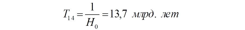 Сначала принимаем, что параметр Хаббла является константой, которая ранее так и называлась – постоянная Хаббла. Известно соотношение между современным значением постоянной Хаббла H0 и возрастом нашей Вселенной T14: