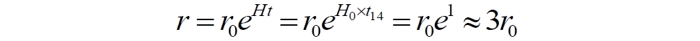 r0 – расстояние в момент начала расширения до объекта, удаляющегося от наблюдателя, либо расстояние между точкой пространства, где в будущем появится наблюдатель, Земля, и точкой пространства, где в будущем появится удаляющийся объекта – некоторая звезда, сверхновая.