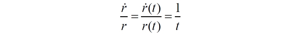 Теперь все переменные в уравнении являются функциями от времени. В таком виде уравнение означает, что в любой момент времени t скорость тела на расстоянии r от начальной, неподвижной точки равна v. Если обозначить величину справа через H, то получим уравнение для дистанций, тождественное уравнению ОТО (1):