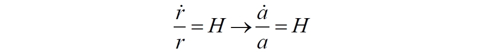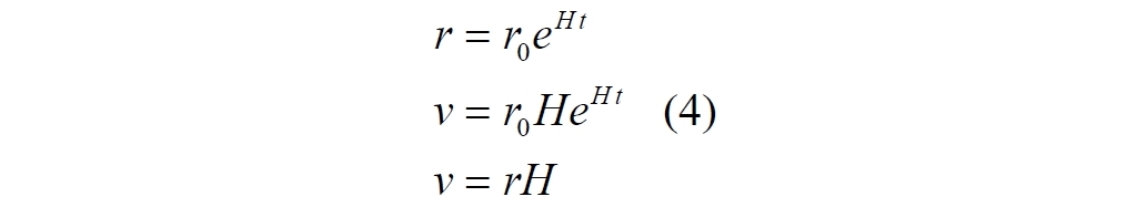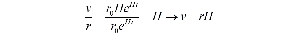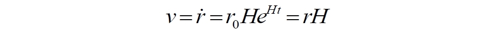 В этом варианте константа r0 также определена из начальных условий для t = 0. Из него теперь уже мы выводим стандартный закон Хаббла для реальных физических скоростей между объектами в расширяющейся Вселенной: