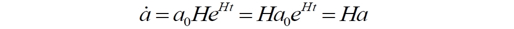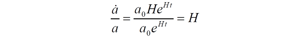 Для H = const это уравнение имеет простое решение, которое можно назвать стандартным законом Хаббла общей теории относительности для расширения пространства-времени и которое имеет следующий вид