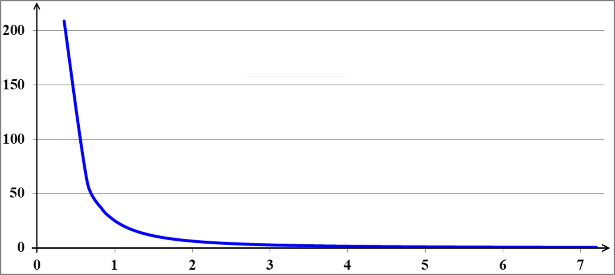 Этот график является образующей, огибающей гравитационной воронки массивного точечного объекта, по сути, Чёрной дыры. Ранее мы выдвинули предположение о том, что внутри Чёрной дыры на самом деле находится нейтронная звезда конечных размеров, то есть, никакое падающее на неё пробное тело не может достичь центра. Любой объект на границе этой внутренней нейтронной звезды попросту распадается, превращается в тонкий слой нейтронов.