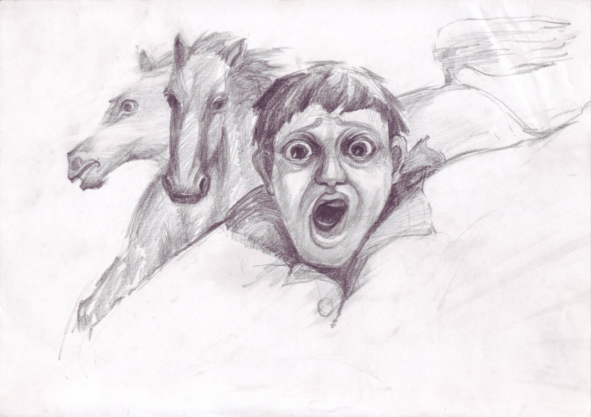 – Да, беги ж ты! И не смотри на них, на канаву смотри, мне не добежать. Беги, беги! – кричал старый казак. И Лешка бежал, со слезами выкрикивая «Деда, деда!», а навстречу ему, восьмилетнему мальчишке, несся обезумевший табун, сотнями копыт врубаясь в сухую солончаковую землю. Он успел юркнуть в канаву и сжаться в комочек, а над ним пролетали, перепрыгивая канаву и гулко ударяя копытами, десятки лошадей. Лешка скулил по щенячьи, а они все прыгали и прыгали…