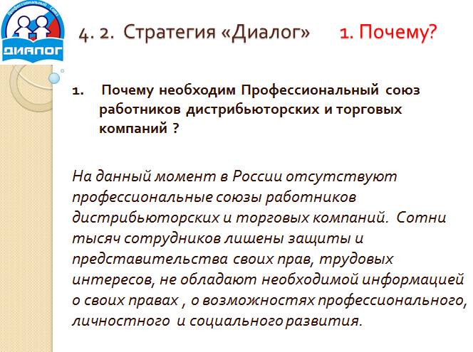 Итак, презентация для участников профсоюза выглядела так: