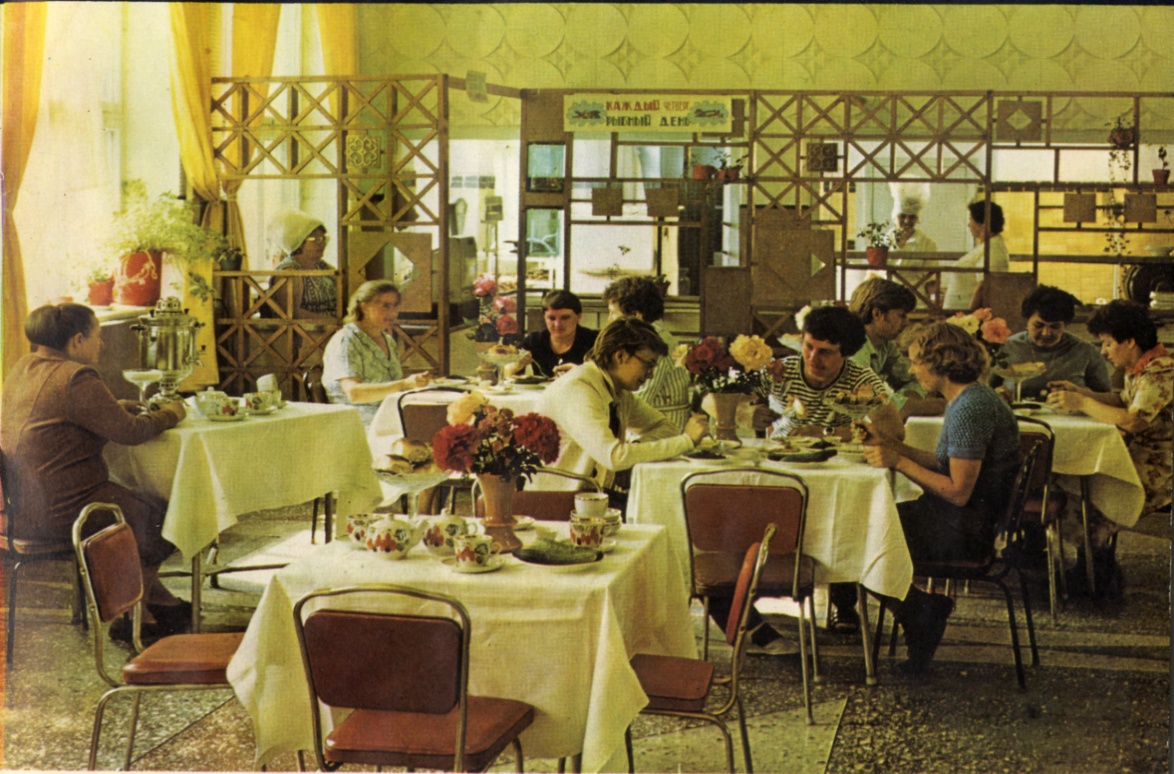К вечеру в каждом доме будут накрыты щедрые столы – несмотря на пустые полки в магазинах, холодильники забиты продуктами. Хорошие хозяйки задолго до праздника начинали собирать угощения – где-то раздобудут палочку копченой колбасы, где-то баночку печени трески да бутылочку армянского коньяка «Белый аист». И долго еще будут звучать из открытых окон песни и смех, слышаться оживленные разговоры, стук тарелок и звон бокалов. Вобщем «мир – труд – май»!
