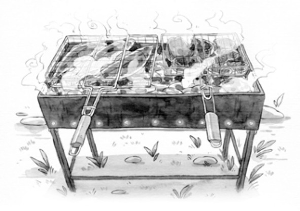 действительно очень устала. Он взял коробку с прутьями для гриля и за несколько минут собрал решётку.