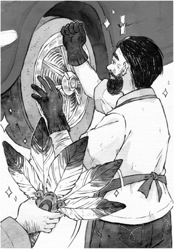К позднему ужину пришёл Кей, который ещё не видел своих японских друзей. Все ему ужасно обрадовались, а тэнгу достал из своей сумки небольшой мешочек и вручил лисёнку: