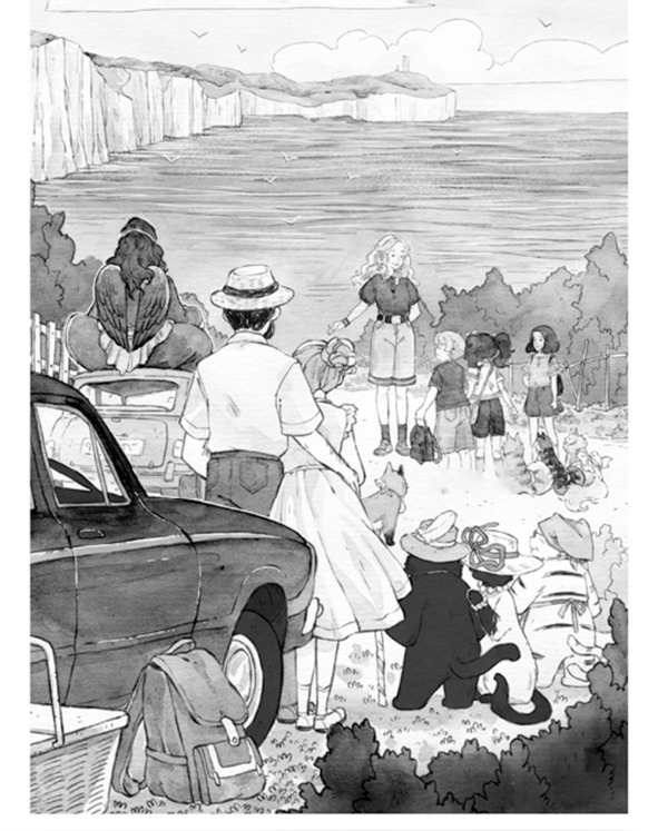 Наконец машины съехали с дороги вниз, остановились, и все выбежали на большой песчаный пляж. Впереди синело море, окружённое с обеих сторон величественными стенами белоснежных скал. Слева на холме виднелась большая старинная крепость Дувр.