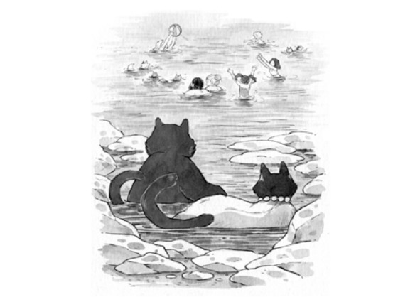 Не верьте тем, кто говорит, что котики не умеют плавать и никогда не купаются! Во всяком случае, эти слова совсем не про наших пушистых героев: все пошли купаться. Сиенна – о чудо! – рассталась на время со своим фартучком: аккуратно сложила его на песке, неспешно окунулась и тихонько поплыла вдоль берега. Танака-сан весело зашёл в воду и так рванул вперёд, что Том и Вулфи, прыгнувшие следом за ним с ближайшего камня, не смогли его догнать. Хантер, не умеющий плавать, нашёл крошечный затон, окружённый валунами. Здесь было очень мелко, и вода из-за этого стала очень тёплой, почти горячей. Матильда улеглась рядом, и они наслаждались солнечными и морскими ваннами.