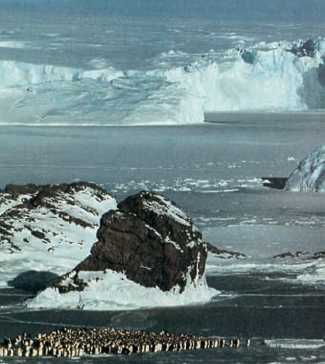 Антарктика – самая суровая область Земли с очень низкими тем-рами воздуха, сильными ветрами, метелями и туманами. Тем-ра антарктических вод колеблется от –2 °C у побережья до 2–6 °C вблизи линии антарктической конвергенции. Солёность – ок. 33–34‰. На сев. периферии Антарктики сильное Антарктическое циркумполярное течение переносит воды на В., а в 60-х широтах действует обширная система стационарных циклонических круговоротов разного масштаба, юж. периферии которых составляют прибрежное Антарктическое течение, переносящее воды на З., вдоль побережья Антарктиды. Пл. морских льдов изменяется по сезонам: к кон. антарктической зимы она равна 18–19 млн. км², летом – 2–3 млн. км². В море много айсбергов, откалывающихся от шельфовых ледников, нередко встречаются гигантские айсберги, периметр которых достигает сотен километров.