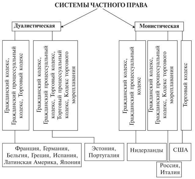 Как было сказано выше, в одних странах совместное существование гражданского и торгового права объясняется историческими традициями, в других – на почве кодификации торгового права произошло политическое объединение государства.