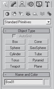 4. В свитке Object Type (Тип объекта) нажмите кнопку с названием объекта – Вох (Параллелепипед).