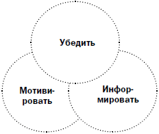Три цели продающей презентацииВ успешной продающей презентации презентатор должен выдерживать баланс между тремя целями. Убедить. Проинформировать. Замотивировать.