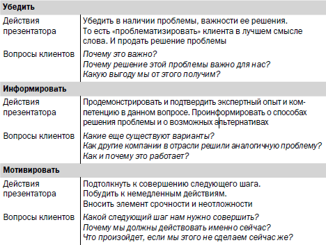 Многие профессионалы имеют тенденцию залипать в информационной зоне, воспроизводя раз за разом описание продукта. Либо они недостаточно убедительны, либо оставляют убеждающий материал на самый конец презентации, когда уже часто бывает слишком поздно.