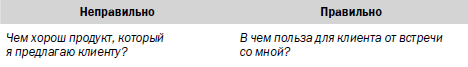 Клиенты хотят получать выгоду от каждого взаимодействия с продавцом. Поэтому все большим успехом пользуются те продающие презентации, во время которых не столько доносятся ценности продукта, сколько создается ценность для клиента.