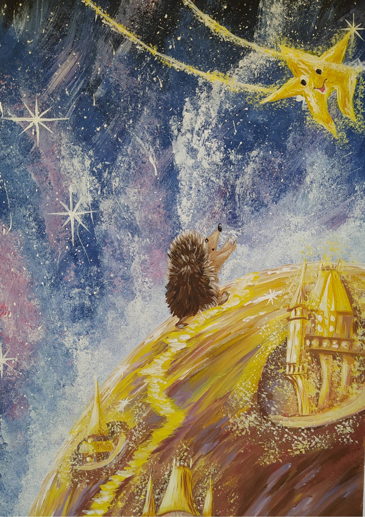 – Ёжик мечтал о путешествии по Звёздному Небу, я исполнила его мечту. И вот мы здесь – сказала Звёздочка. А ты куда направляешься?