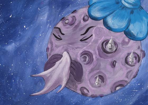 Прошло время. Луна все так же светила ярко-ярко. Но уже никто не видел Блуждающей Снежной Планеты. Она растаяла, оставив после себя огромную Ледяную Снежинку, которая блестела, переливаясь на Солнце.
