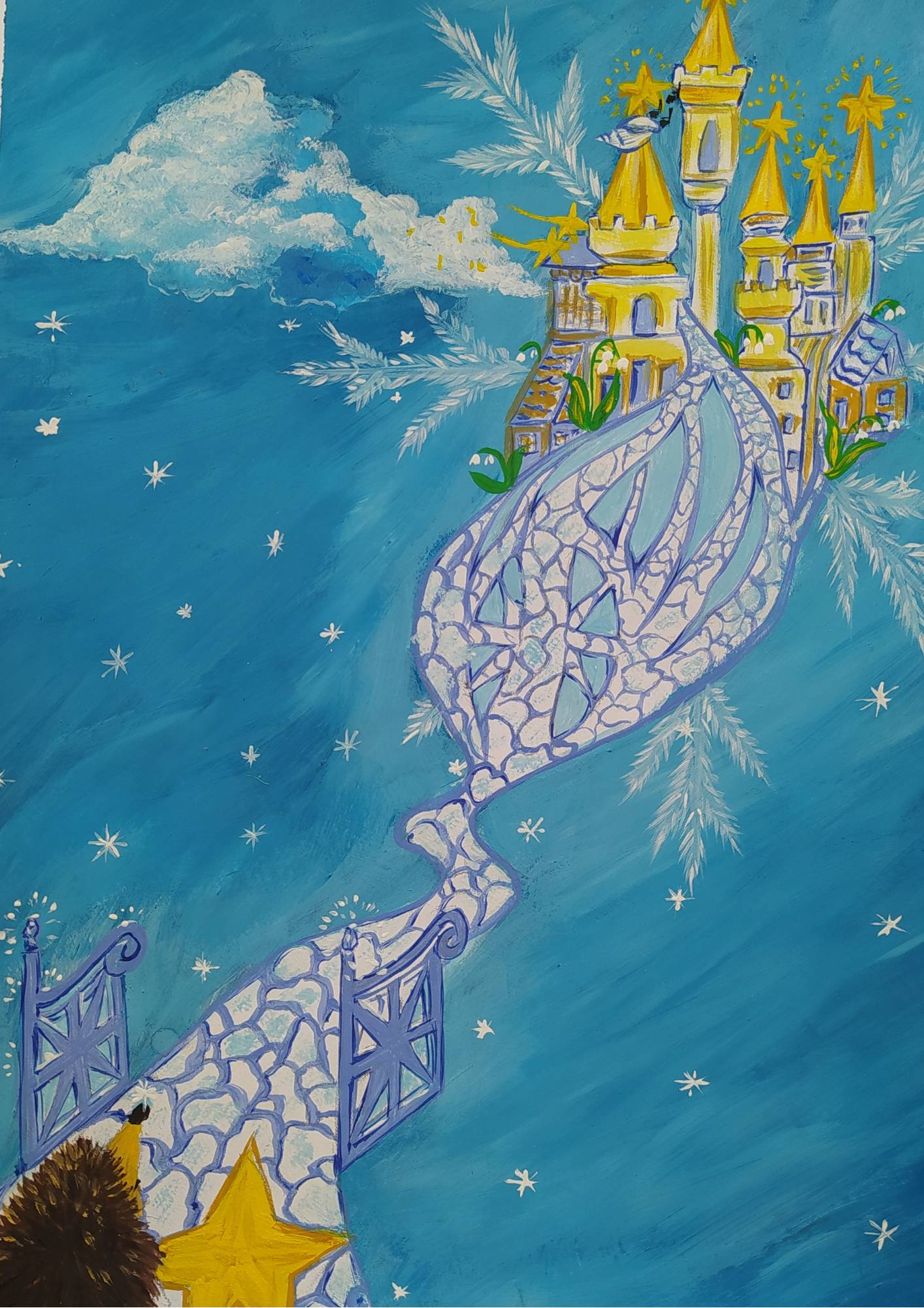 Блуждающая Снежная Планета возникла от Огромной Снежинки. Чтобы спасти эту Снежинку и не дать ей исчезнуть, Звездочёт и Лунные Жители построили на ней Звёздный Город. Если что-то приносит пользу и помогает другим, оно никогда не исчезнет. Они построили хрустальные башенки, соединив их с Водопадом при помощи дорожек. Водопад располагается в самом центре огромной Снежинки – это Сердце Снежной планеты. А теперь он стал Сердцем Звёздного Города. Только сейчас Ёжик заметил, что вода из Водопада попадает на звёздную дорожку и тонкой струйкой бежит к башенкам со Звёздами.