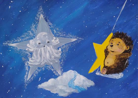 Вдруг, вдали Ёжик заметил яркий свет – он не мог понять, откуда он исходит. Чем ближе они подлетали, тем ярче становился этот свет. Ёжик даже зажмурился. Когда он открыл глаза, то увидел, что они подлетели к большой яркой Звезде.