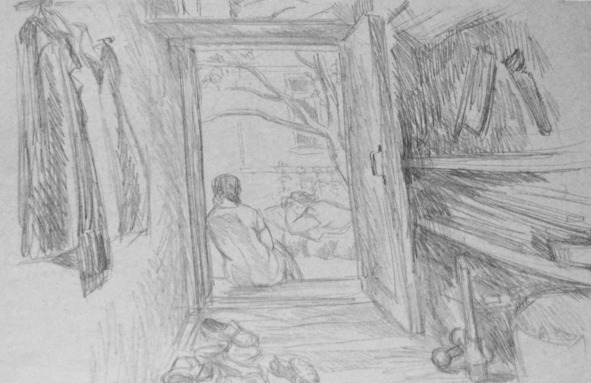 В.Г.Щелоков (фрагмент восстановленного эскиза картины)